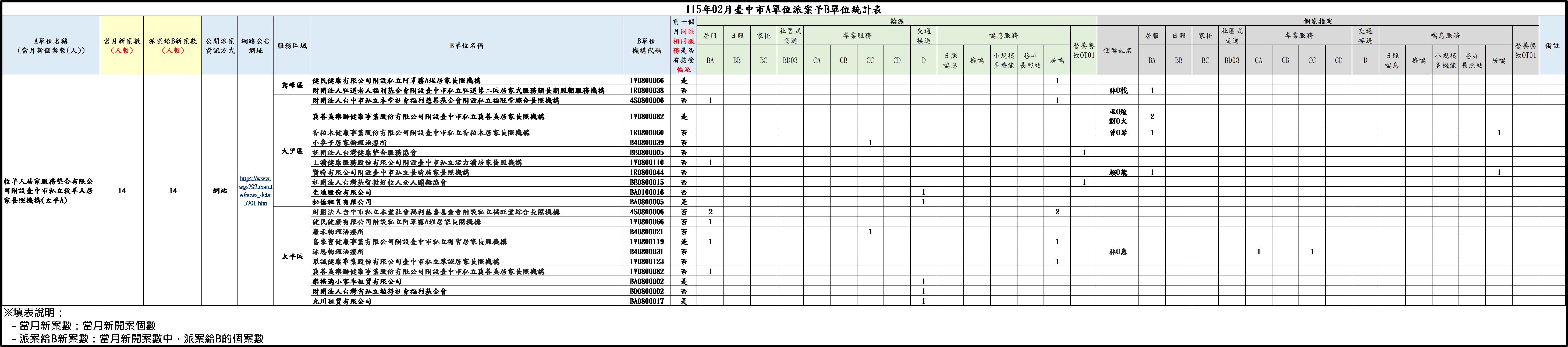 台中牧羊人(A)115年02月份A派B輪派表